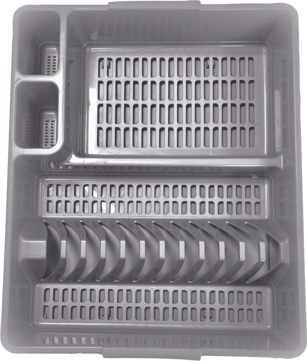 Afdruiprek En Onderzetter – 2-delig Afdruiprek Met Kliksysteem – Hoogwaardig Kunststof Extra Hard – Metallic Grijs
