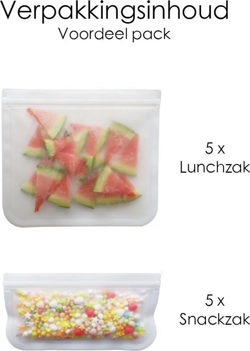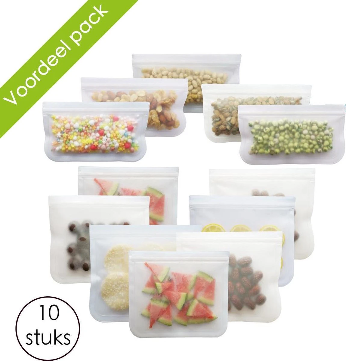 Deze set van 10 siliconen vershoudzakken helpt je bij deze balans in het opbergen en vers houden van je voeding. De herbruikbare siliconen vershoudzakken zijn gemaakt van een veilig, BPA-vrij en duurzaam materiaal, zijn makkelijk schoon te maken en daarna weer veelvuldig herbruikbaar. De siliconen vershoudzakken kan je gebruiken voor: