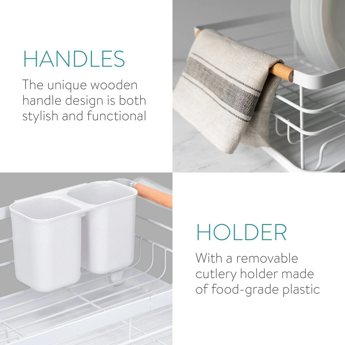 - MODERN DESIGN: Dit afdruiprek is een blikvanger voor elke keuken. Met het Scandinavische design en houten handvatten zal het zeker niet misstaan.
