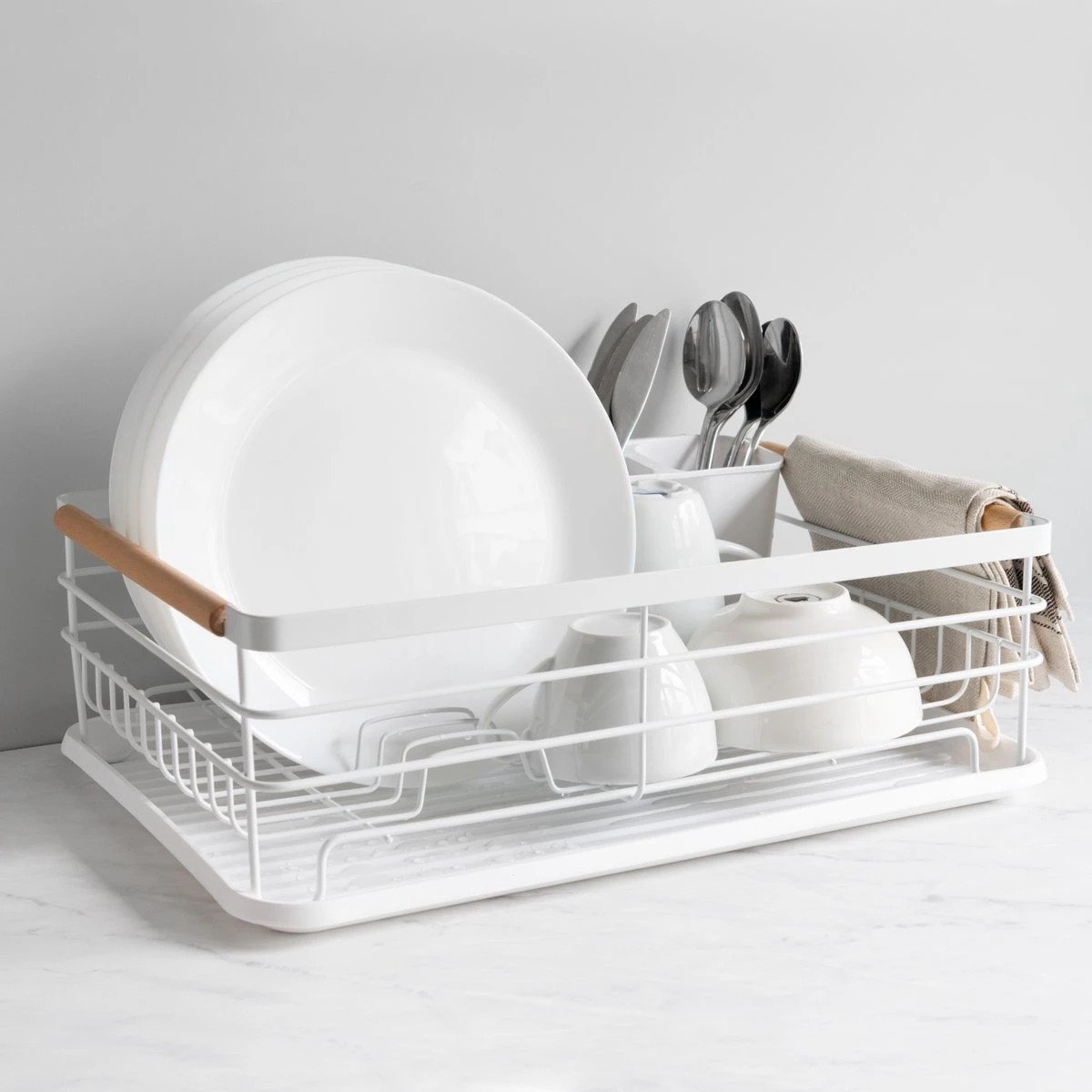 Afdrogen was nog nooit zo makkelijk met dit afdruiprek van Navaris. De set bestaat uit een afdruiprek, afneembare bestekhouder en een lekbak.