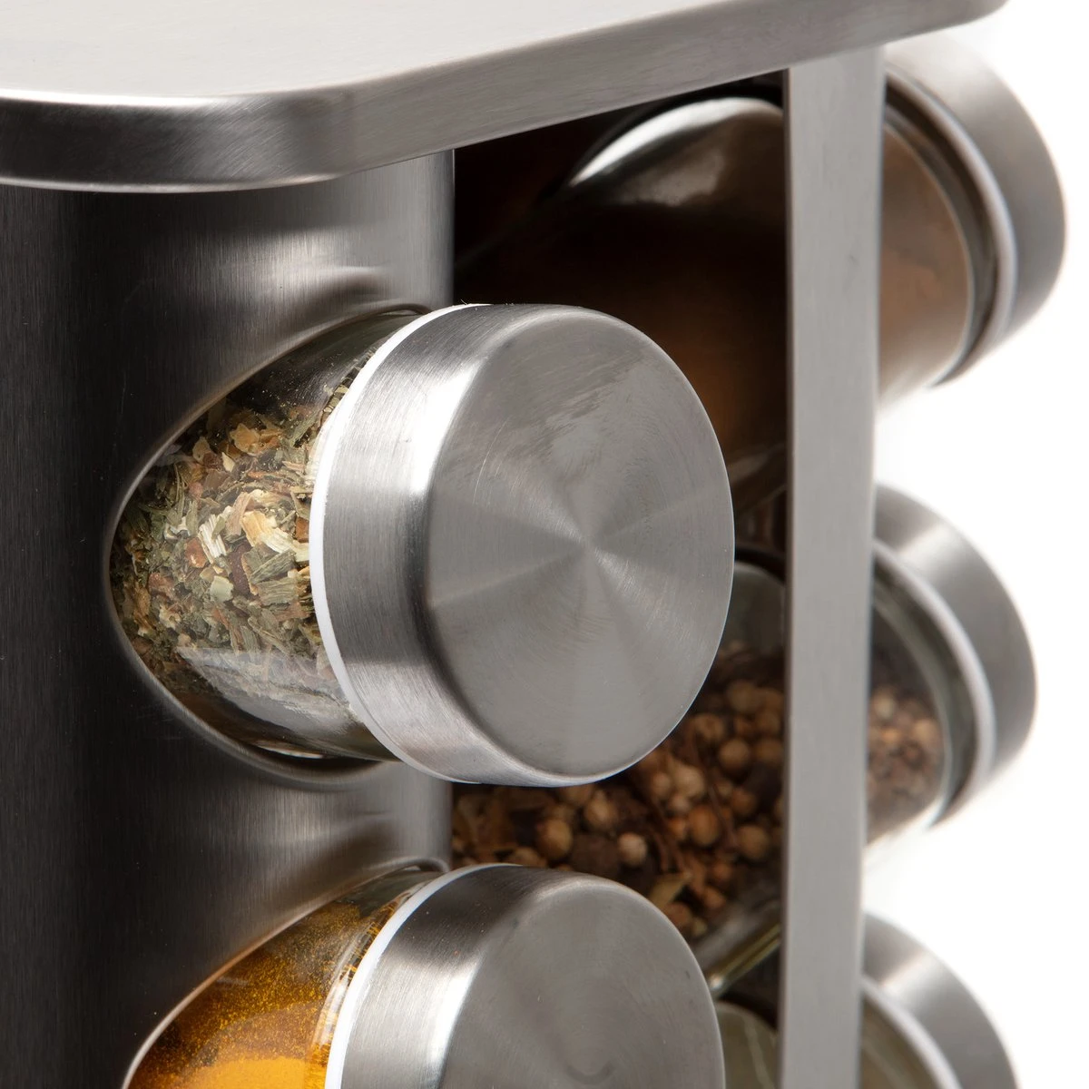 De carrousel draait soepel waarbij de potjes goed blijven zitten in de houder. Je kunt eenvoudig de kruidenpotjes vullen en kiezen tussen een fijne of grove dosering. De dekseltjes van de glazen potjes zijn gemakkelijk te openen en zijn zeer stevig, zo kun jij genieten van veel gemak tijdens het koken van het eten.