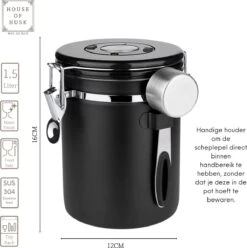 Brabantia Voorraadbus – 1,4 L – Matt Steel Fingerprint Proof / Matt Black Deksel – Met Venster