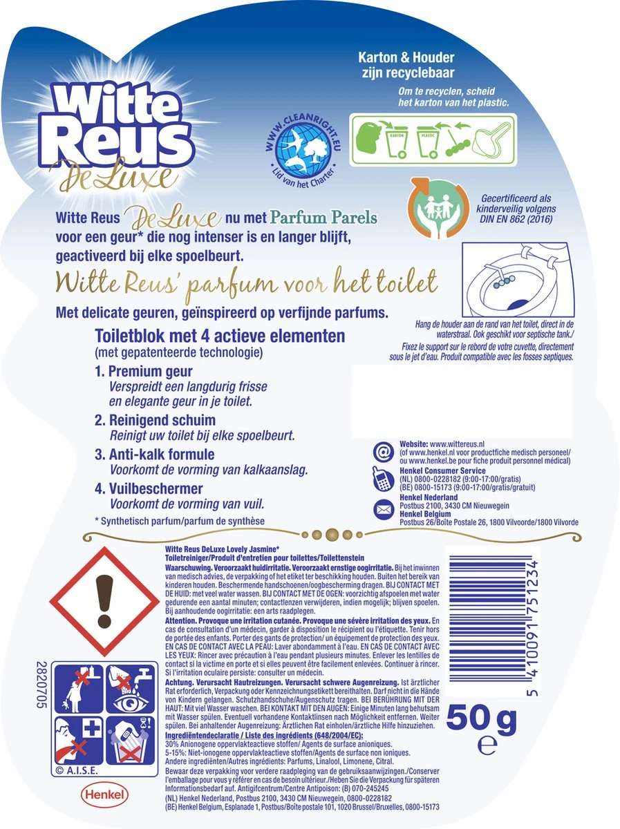 Witte Reus DeLuxe Toiletblok – Lovely Jasmine – WC Blokjes Voordeelverpakking – 10 Stuks